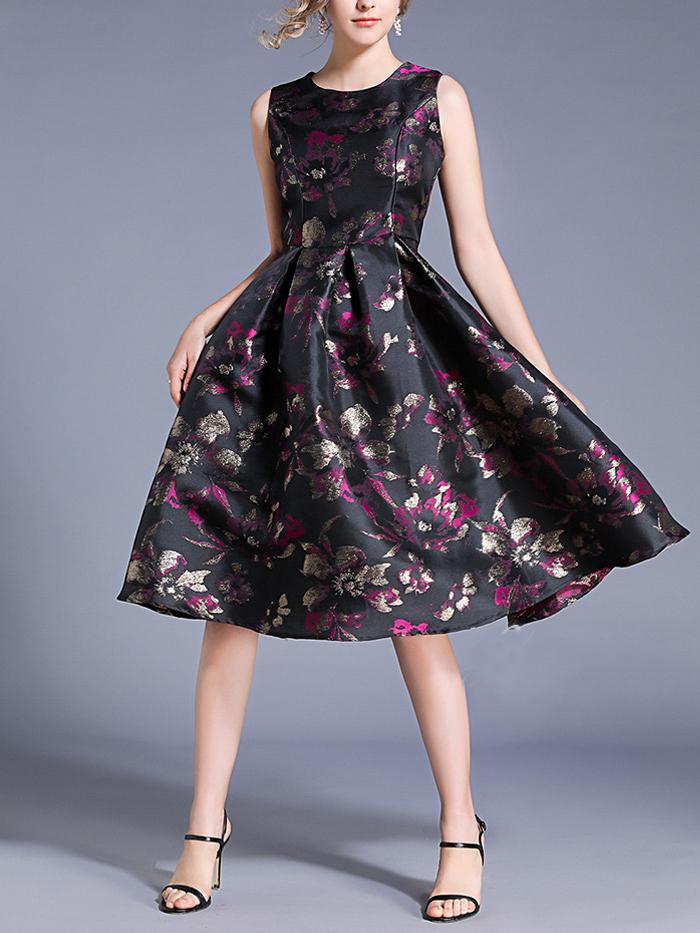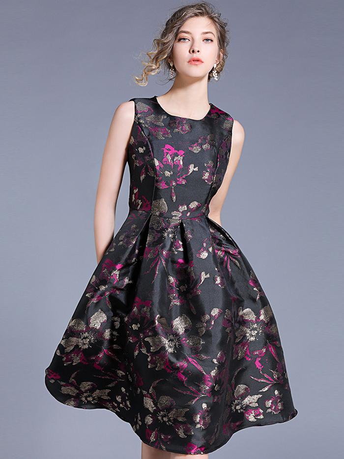 Round Neck Sleeveless A-line Dress
