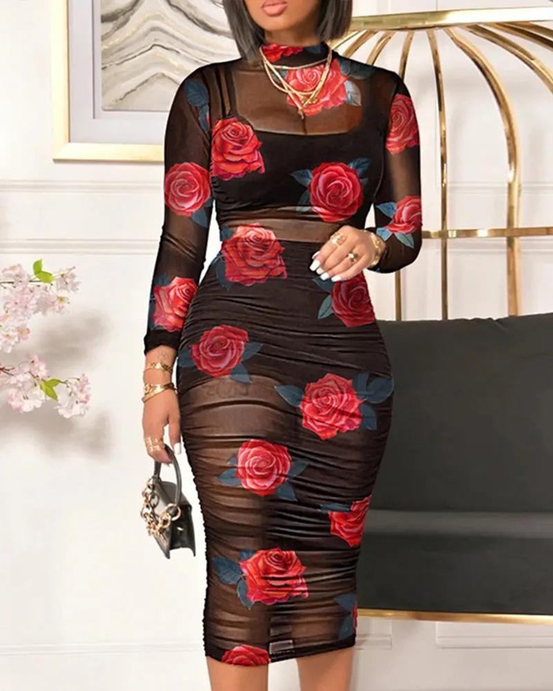 Three-piece suit of camisole + skirt + mesh dress