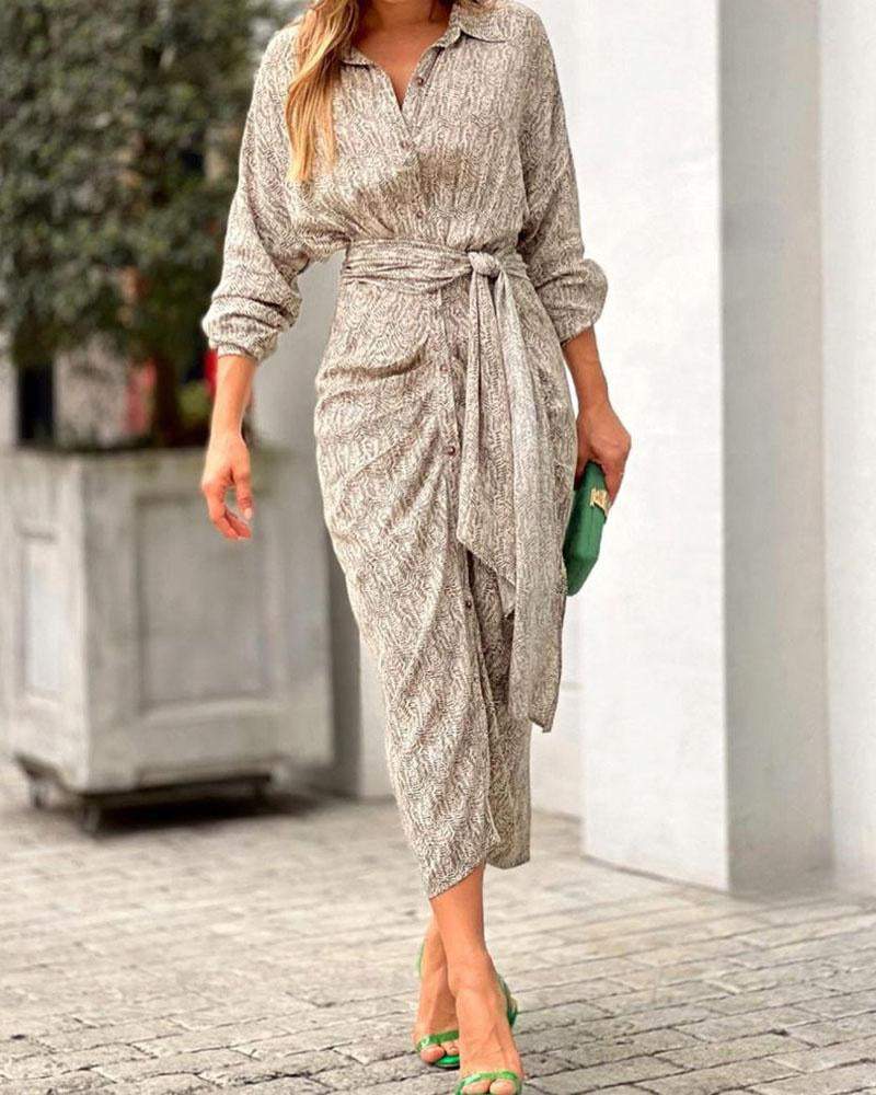 Printed long-sleeve lace-up dress