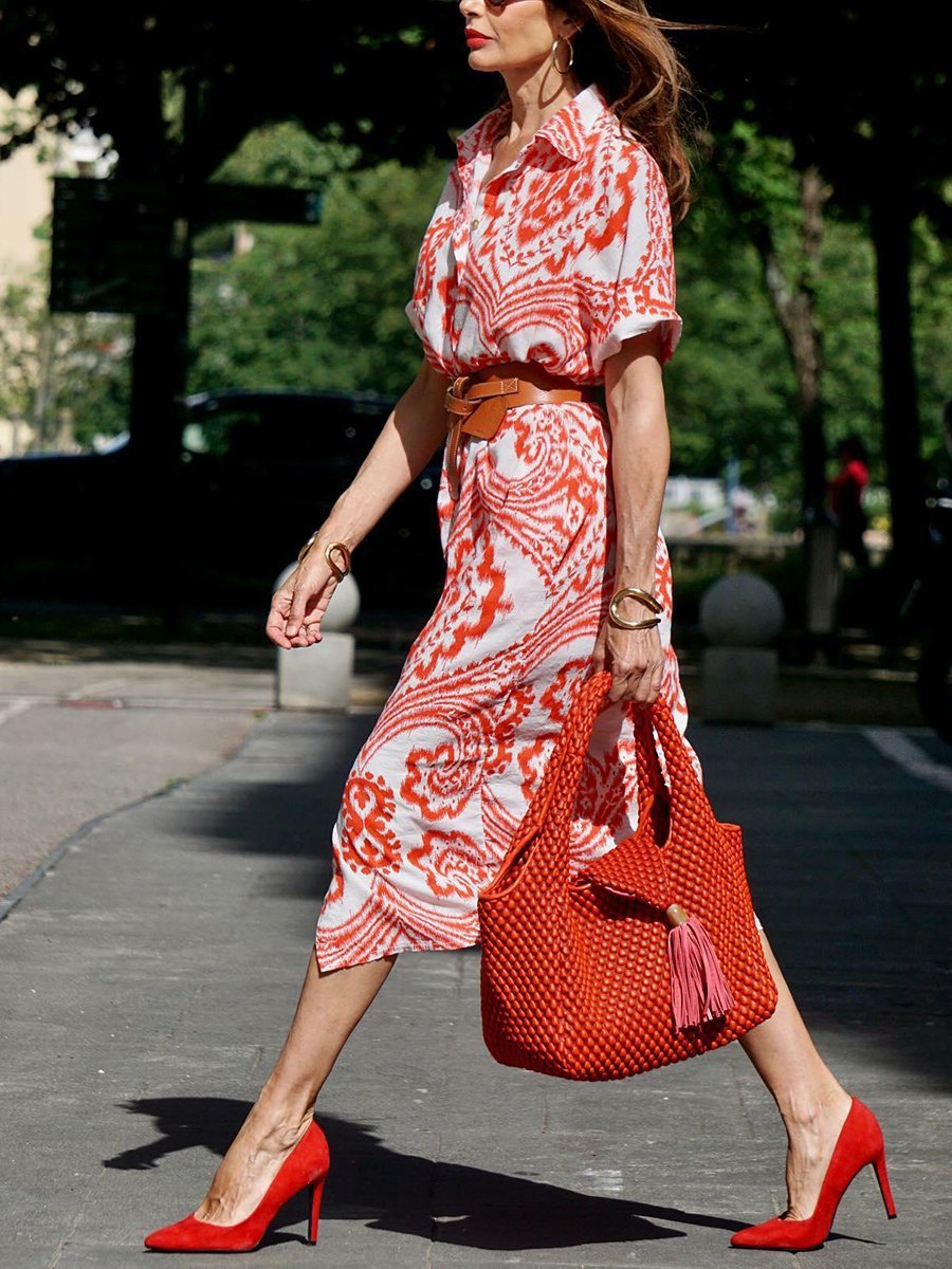 Trendy Printed Midi Shirt Dress
