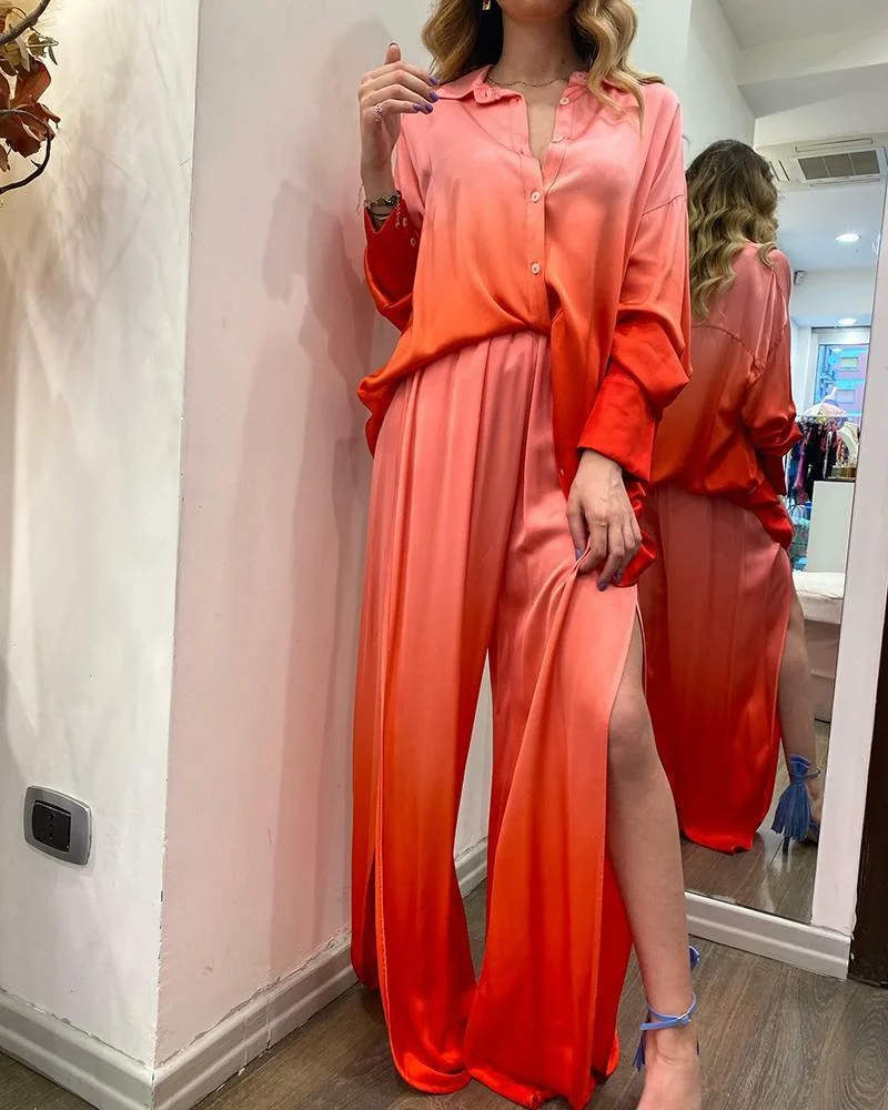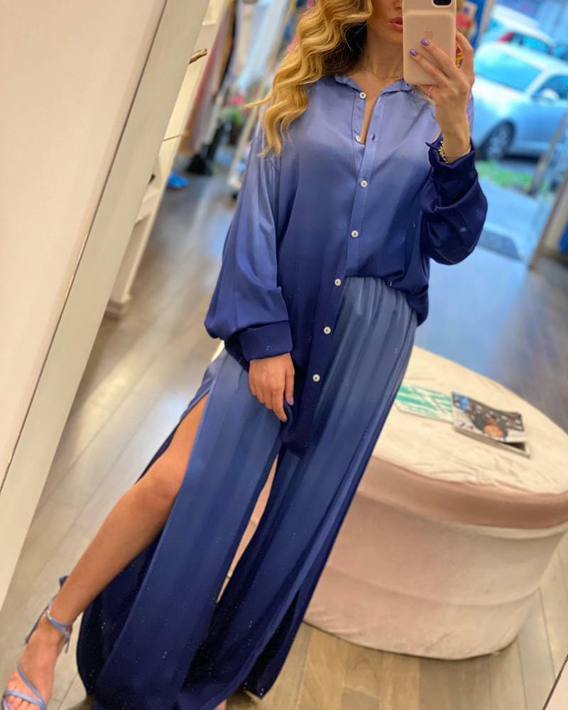 Elegant Pleated Long Sleeve Black Two Piece Suit