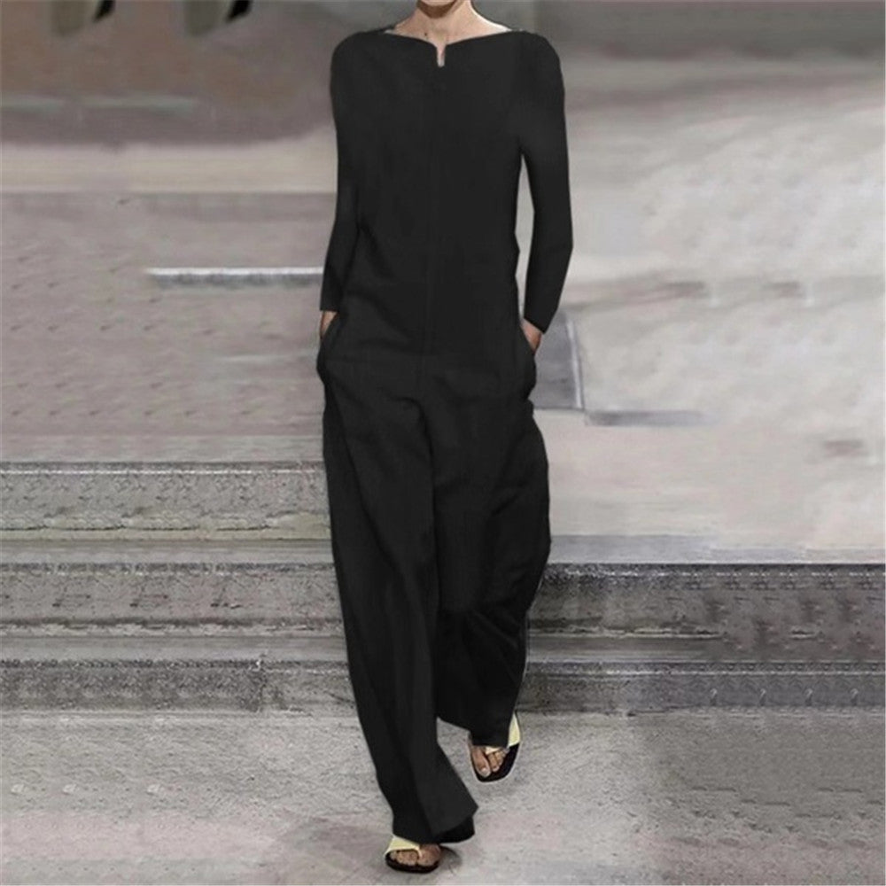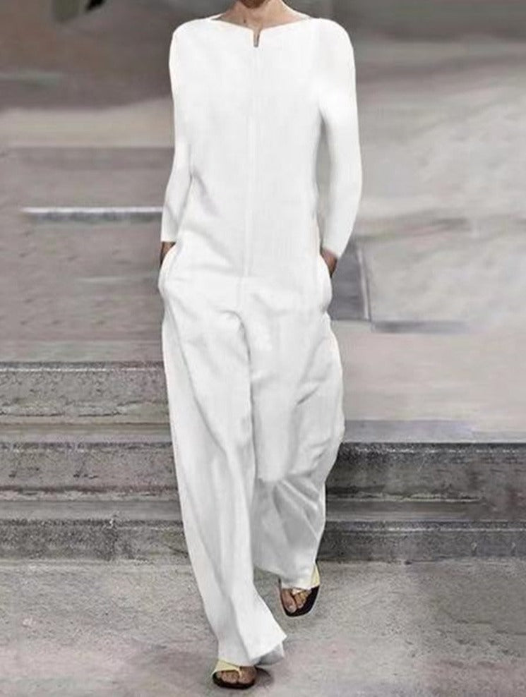 White V-neck Long-sleeved Simple Dress In The Long Section