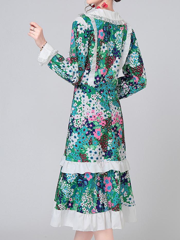 V-neck Women's Lace Doll Collar Fashion Print Dress
