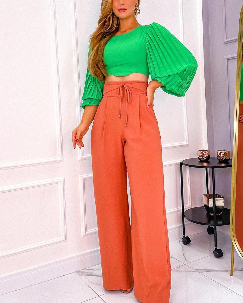 Elegant Pleated Long Sleeve Black Two Piece Suit