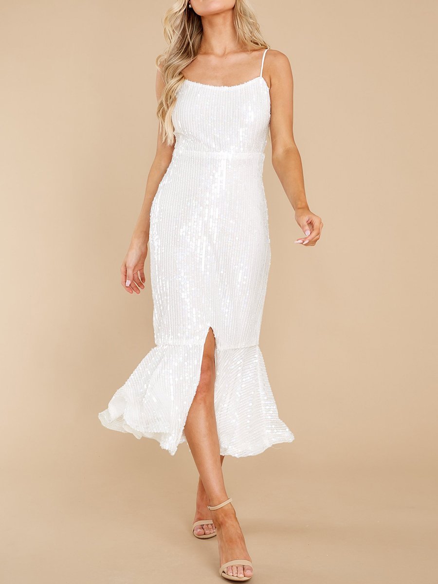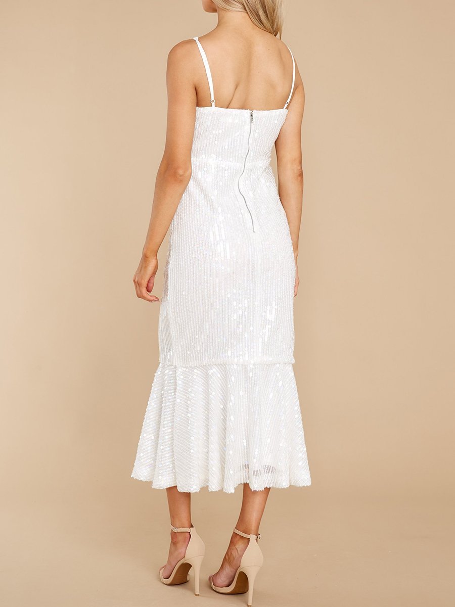 White Sequin Midi Dress