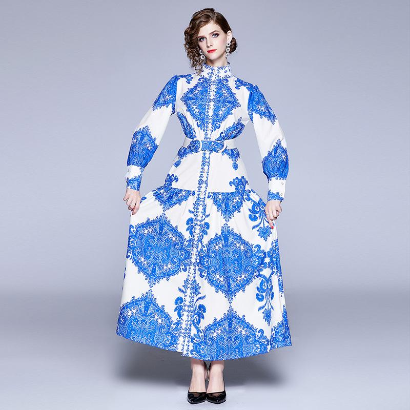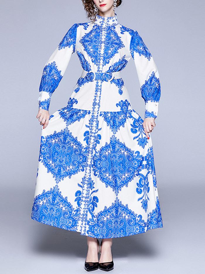 White V-neck Long-sleeved Simple Dress In The Long Section