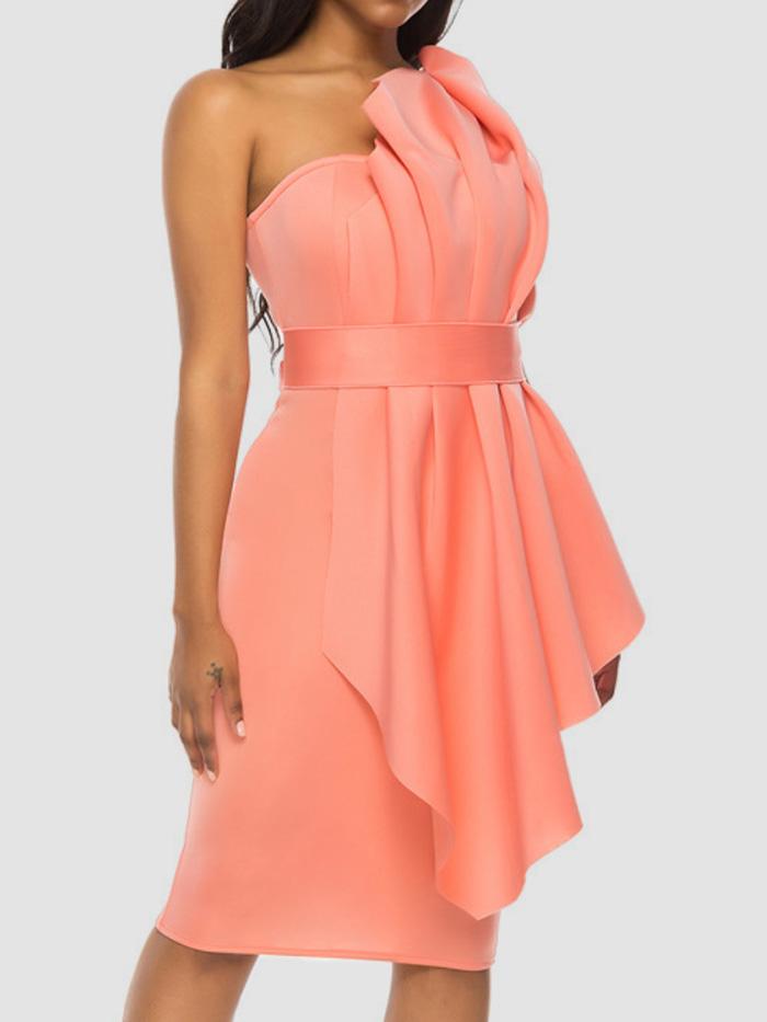 Elegant SATIN Wrap Chest Sleeveless Mid Length Evening Dress
