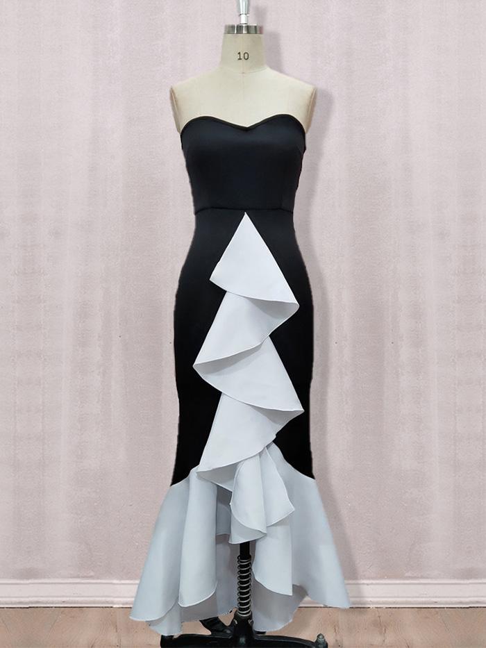Wrapped Chest Stitching Contrast Color Irregular Dress